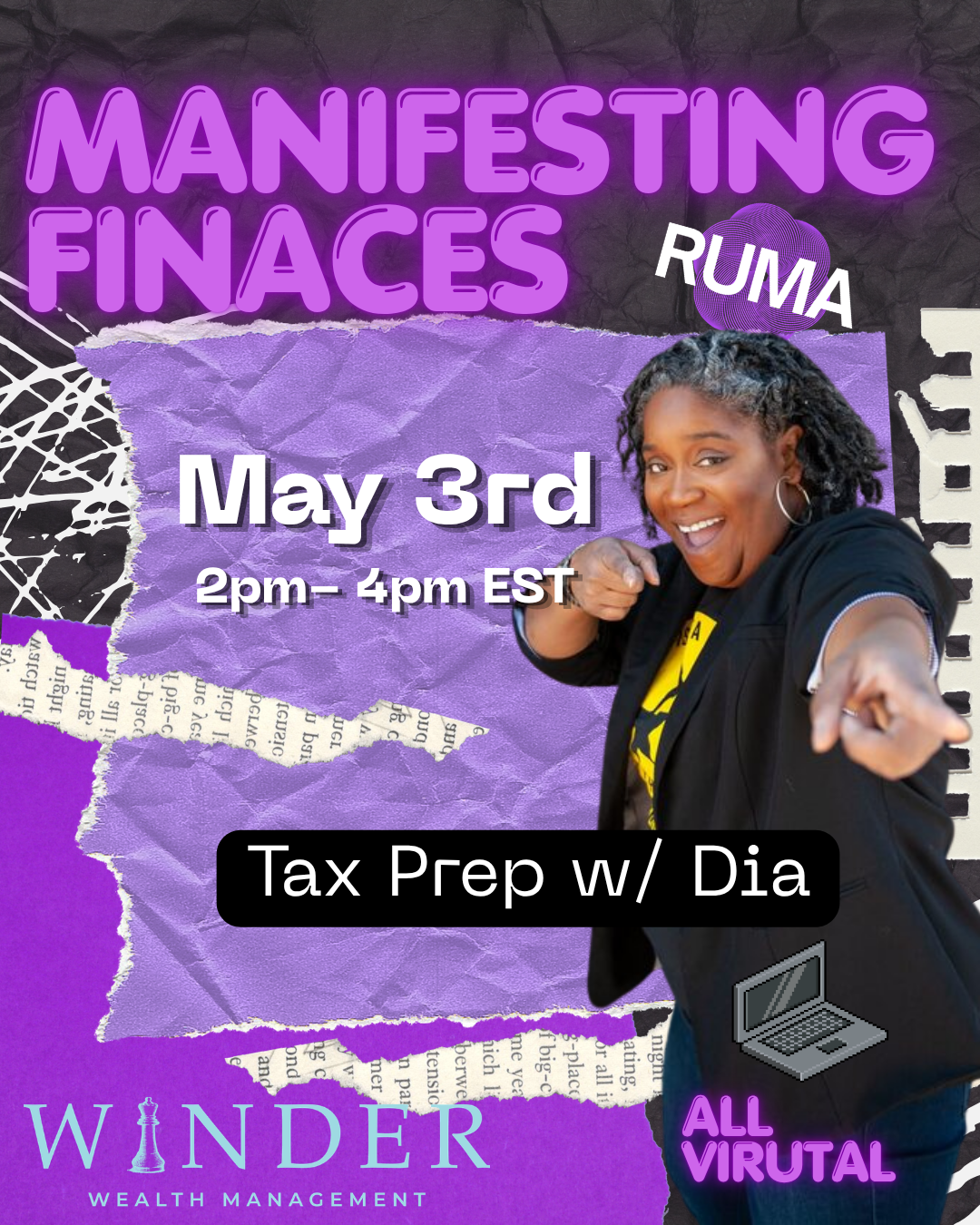 On MAY 3 we will be hosting a Tax Prep workshop with Danielle “Dia” Winder, financial advisor and owner of Winder Wealth Management. Dia will go over the basics and answer the question of what IS tax preparation? If you filed on time this year, this workshop can help you prepare for next year! And if you filed an extension this year, this workshop can help you get on track to filing by the October deadline.